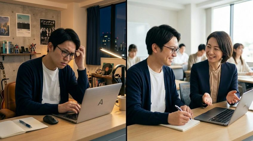 教室では、講師があなたの画面を横で見ながら「今、どこで手が止まったのか」を即座に判断します。自力で解決策を探して数時間を浪費する代わりに、プロのアドバイスで数分で解決できる。この圧倒的な「タイパ(タイムパフォーマンス)」の良さこそが、教室に通う最大の価値なのです。