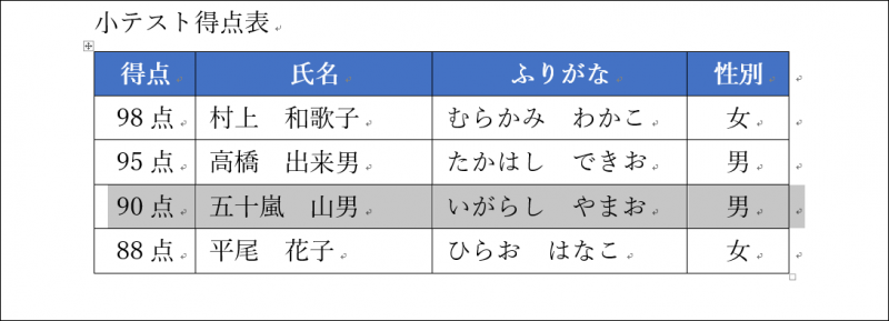 ここでは、五十嵐君の行にカーソルを移動します。