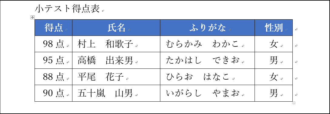 作成後に「あ!平尾花子ちゃんと五十嵐山男君の順番が逆だった!」と気付きました。