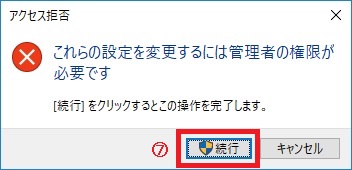 ⑦この様なウインドウが出た場合はさらに「続行」をクリック