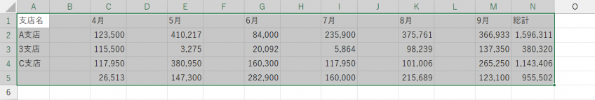 また、複数の区切り文字が入っている場合には行と列で分割もできます。