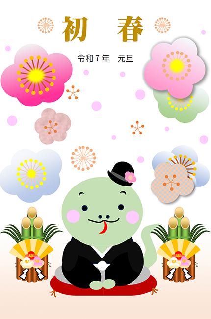 イラストがすべて図形で立体的に作成されているのには驚きましたが、特に蛇は金色に輝いて見える感じに表現されているのがお見事!と感じました。毎年、年賀状コンテストに向けて、コツコツと作品を作成して頂いていることにたいへん嬉しく思います。