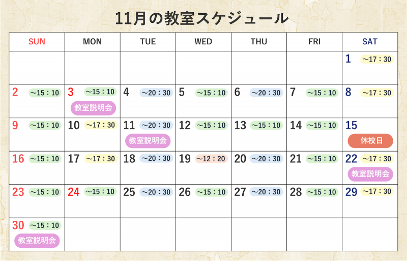 11月教室予定表