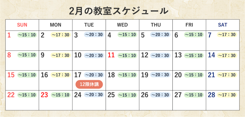 2月教室予定表