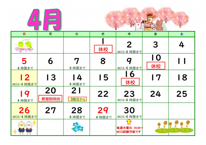 ※日曜・祝日は4限目まで