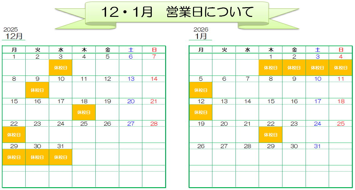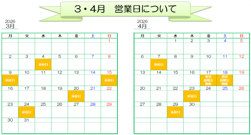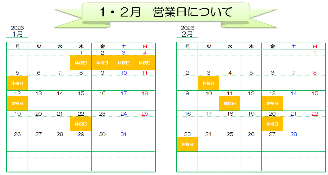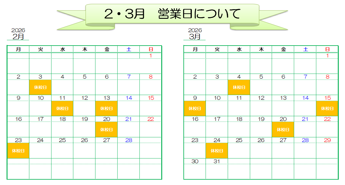 休校日はお電話がつながりませんので、あらかじめご了承ください🙇♀️