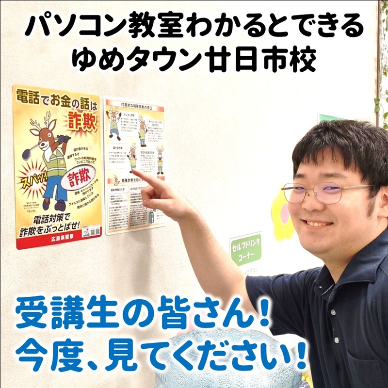 パソコン教室わかるとできる ゆめタウン廿日市校です。