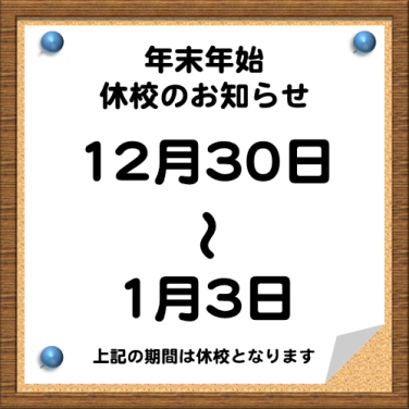 教室の年末年始の休校日をお知らせします。
