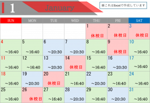 ・ 休校日、短縮は月のご予約表をご確認ください。