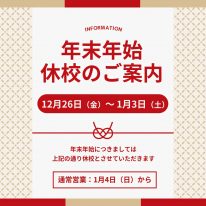 わかるとできるマークイズかなまち校では、以下の通りを年末年始のため休校とさせていただきます。 2025年12月26日(金)~ 2026年1月3日(土) 資料請求・無料体験のお申込みはWe…