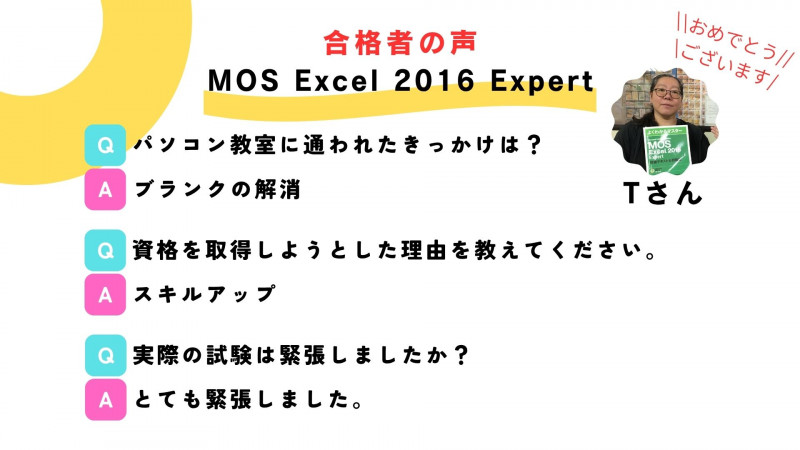 【生徒様の声】Tさん、MOS合格おめでとうございます!