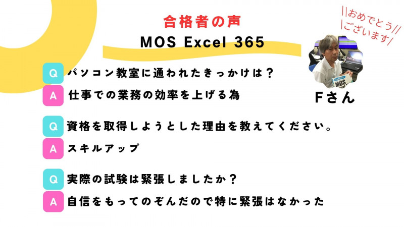 MOS合格おめでとう!Fさんの努力が実を結びました