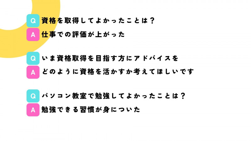 Q. いま資格取得を目指す方にアドバイスをお願いします。