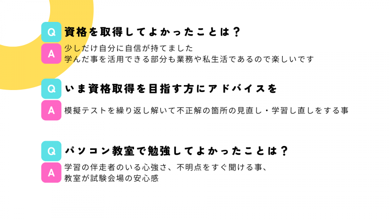 Q. いま資格取得を目指す方にアドバイスをお願いします。