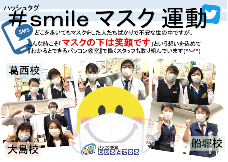 私たちもパソコン教室も「♯SmileMask(スマイルマスク)運動」賛同します!!!(*^▽^*)