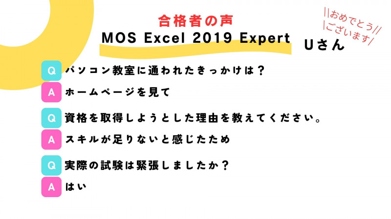 今回のブログは、MOS試験に合格された生徒様のご紹介です。
