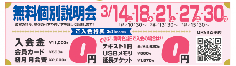 🌟無料個別説明会 実施中!🌟 3/31(火)まで毎日開催!