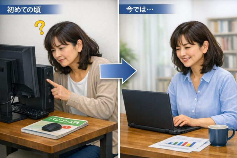 50代女性:電源の入れ方から始まり、今ではWordで資料作成まで