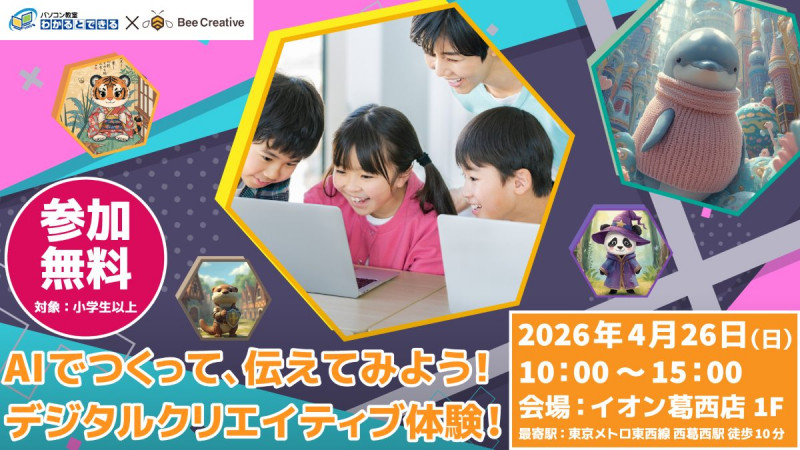 【参加無料】AIでつくる!デジタルクリエイティブ体験|イオン葛西校(4/26開催)