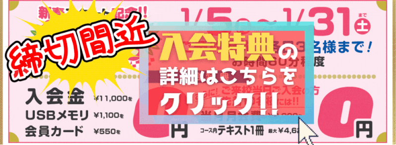 ・座席に空きがある場合は、いつでも追加授業が受けられます。お電話でのお申し込みも可能ですのでお気軽にご相談ください。