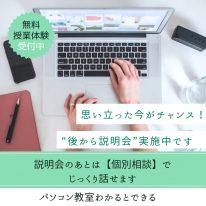 「説明会だけ」と思っていたのに… 「パソコンに自信はないけど、教室に通うほどでもないかも…」「とりあえず話だけ聞いてみようかな」そんな軽い気持ちで説明会に来られる方は、実はとても多いんです。 でも、そ…