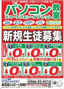 ただいま10月限定で、 入会金等がお得になるキャンペーン を実施しています。