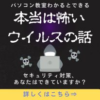 「私はそんなに使ってないから大丈夫」…本当でしょうか? みなさん、こんにちは!インストラクターの吉留です。 今日はご質問が多い、ウイルス対策についてご紹介!最後までぜひご覧くださいね 教室でも最近、「…