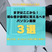 まずはここから!初心者が最初に覚えるべきパソコン基礎3つ 2025年10月6日 スタッフおすすめ講座「パソコンは初めてで不安…」そんなあなたへ 「パソコンを触るのが初めてで不安…」という方はとても多いです。教室でも「電源の入れ方から知りたい」という声をよくいただきます。 今回はそんな方に向けて、最初… つづきを読む