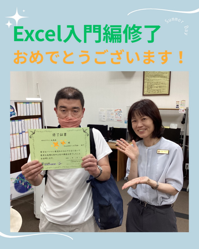 みなさまこんにちは!先日Excel入門編を修了された生徒様をご紹介します。
