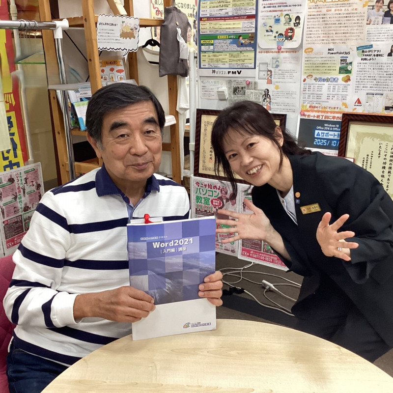 自治会で書類を作成する必要があり、入会しました。 先生方は、分からないことを単に教えてくれるだけでなく、答えの方向に導いてくれて、いつも笑顔で接してくれるので、安心して勉強できています。Wordで写真や図を入れたりして、できることが増えていくのがうれしく、教室に通うのが毎回の楽しみになっています。これからもパソコンを広く学び、さまざまな場面で活かしていきたいです。