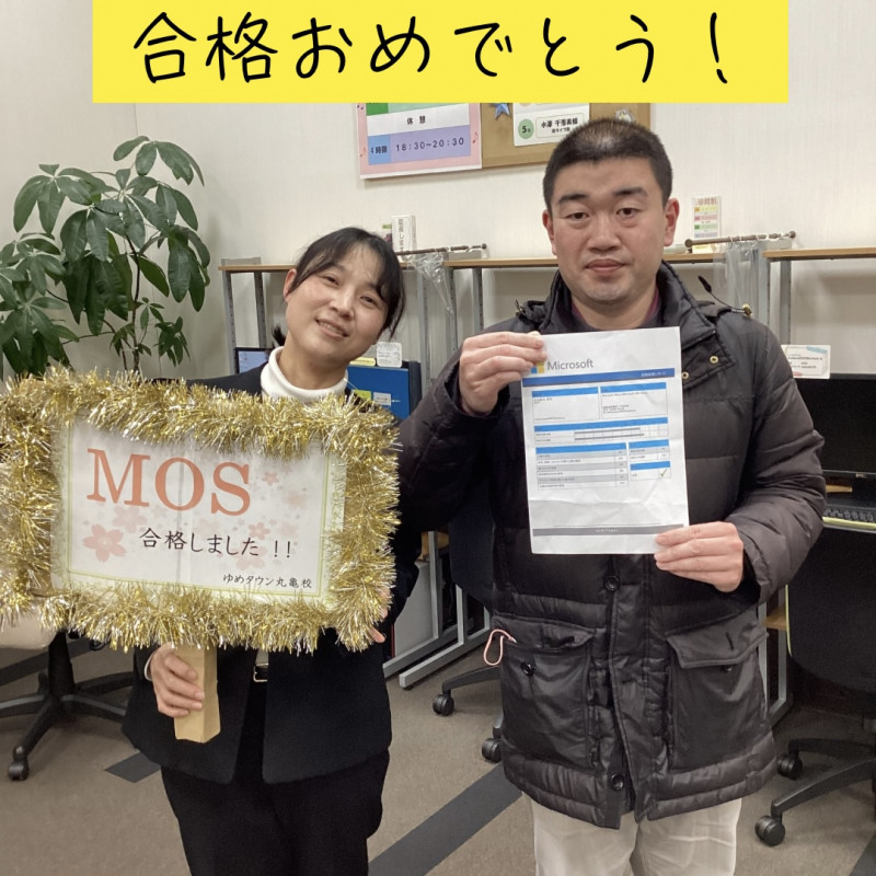 何かを学んだほうが良いと、恩師にすすめられてパソコンの勉強をはじめられました。当初は資格を取る予定ではなかったのですが、将来のことも考えて、思い切って資格取得に挑戦することにしました。模擬テストを何度も繰り返し、合格をつかみとりました!本当におめでとうございます!!現在は次の目標のExcelの取得に向け、Excel基本を勉強中です。がんばっていきましょう!
