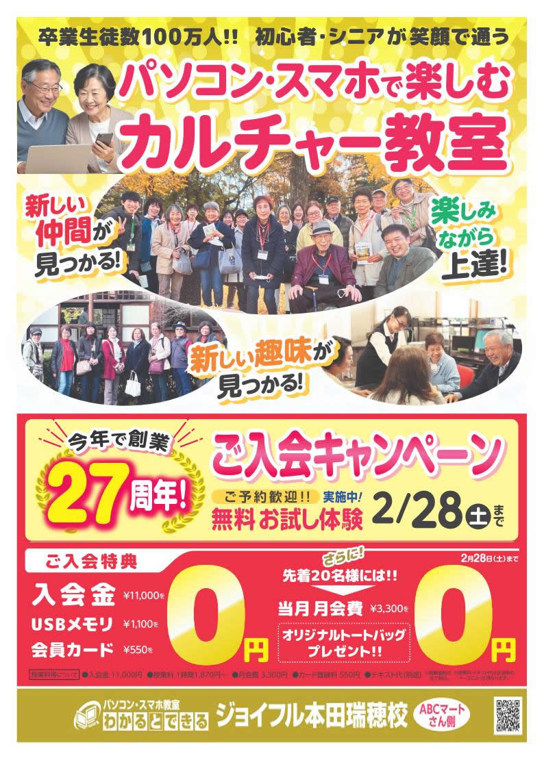 パソコン・スマホ教室わかるとできるジョイフル本田瑞穂校