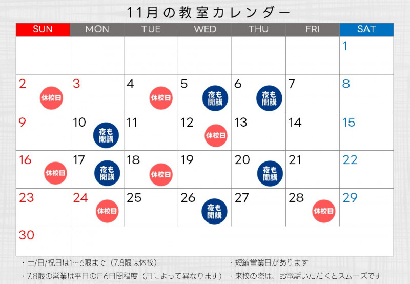 (10:00~18:00/休校や短縮営業日はカレンダーにてご確認ください)