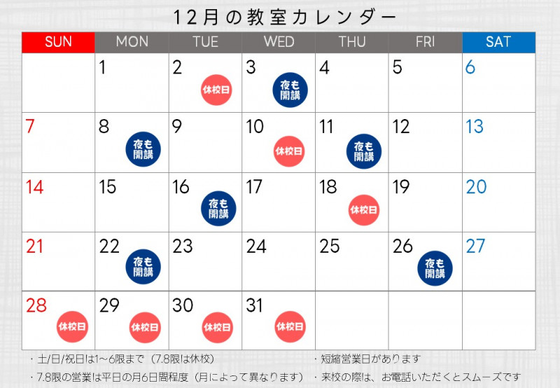 (10:00~18:00/休校や短縮営業日はカレンダーにてご確認ください)