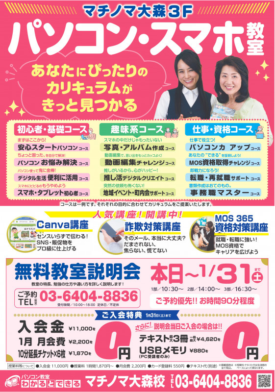 マチノマ大森校では、そんな皆さまの“最初の一歩”を全力で応援いたします!