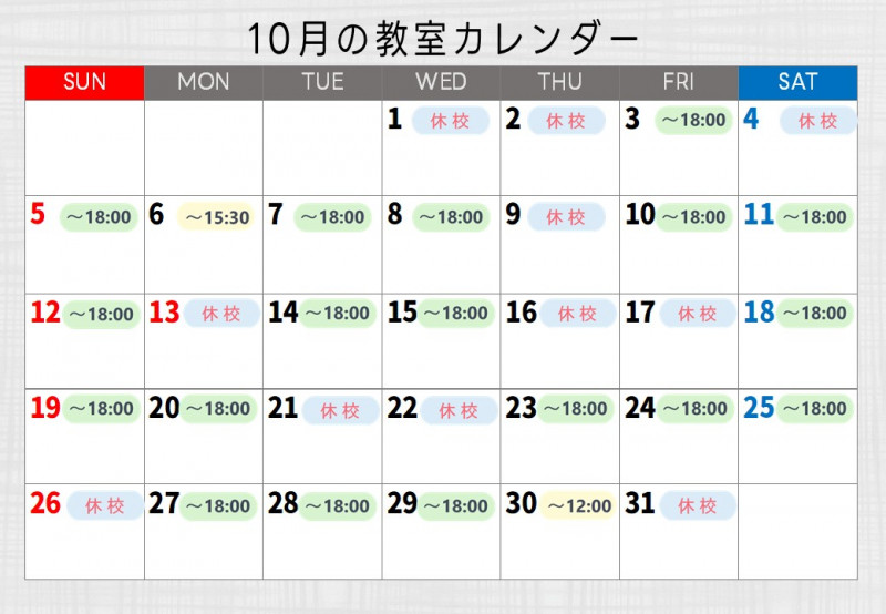 (10:00~18:00/休校や短縮営業日はカレンダーにてご確認ください)
