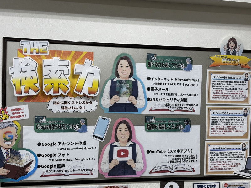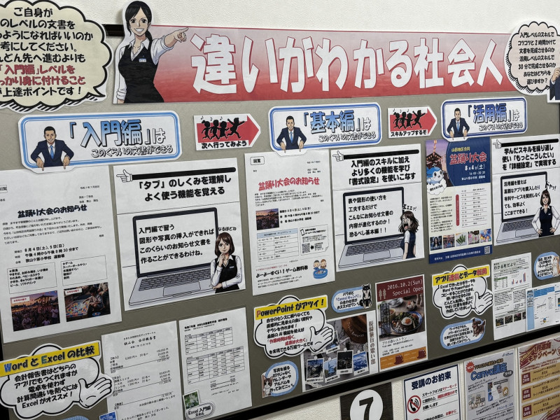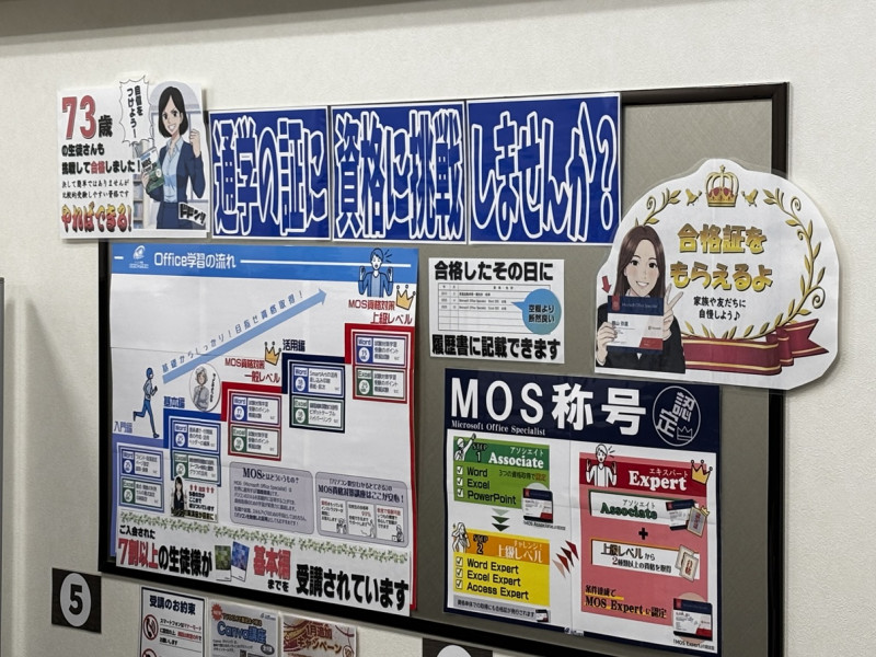 教室内には、最新のお知らせや期間限定キャンペーン、イベント情報などが随時掲示されています。