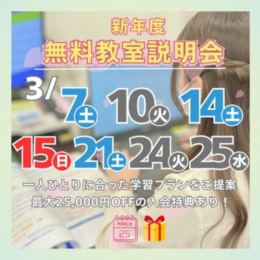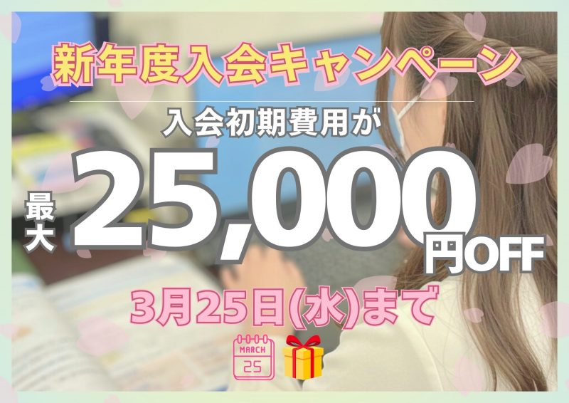 🌸3月限定!最大25,000円OFFの入会キャンペーンのお知らせ【3月25日(水)まで】
