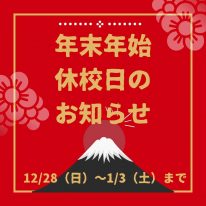 皆さん、こんにちは!インストラクターの吉副です。 2025年も残りわずかとなりましたね!年賀状の印刷は皆さん終わりましたか~?? 年内開講日は27日(土)17:40までの授業となります。 来年は1月4…
