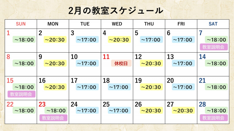 2月教室予定表