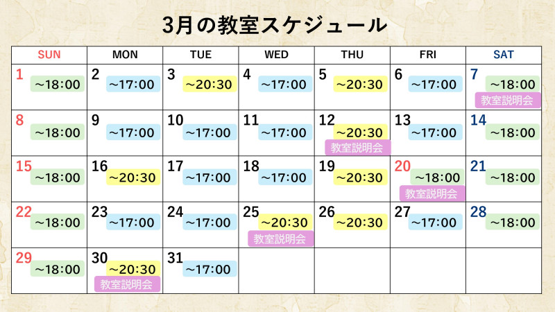 3月教室予定表