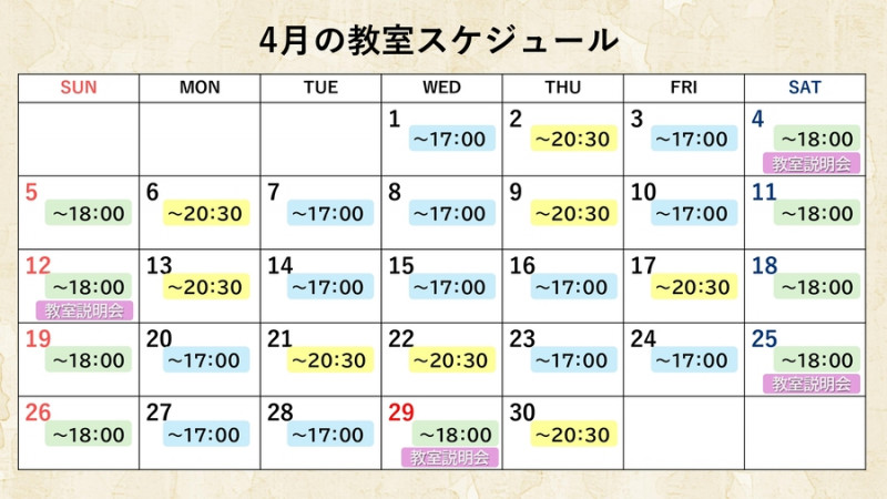 4月教室予定表