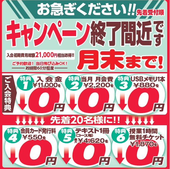 10月末までのお得なキャンペーン、終了間近です!!まだ間に合います!!