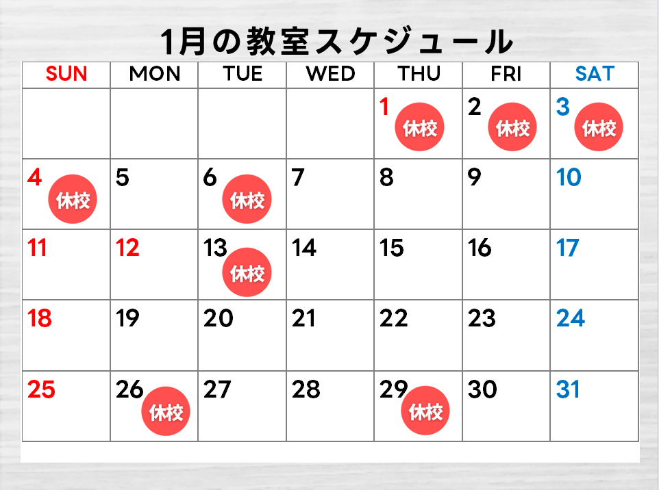 ◆1月休校日のお知らせ◆