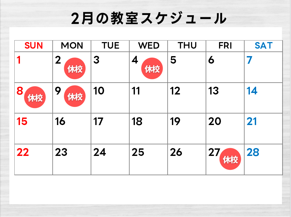 ◆2月休校日のお知らせ◆