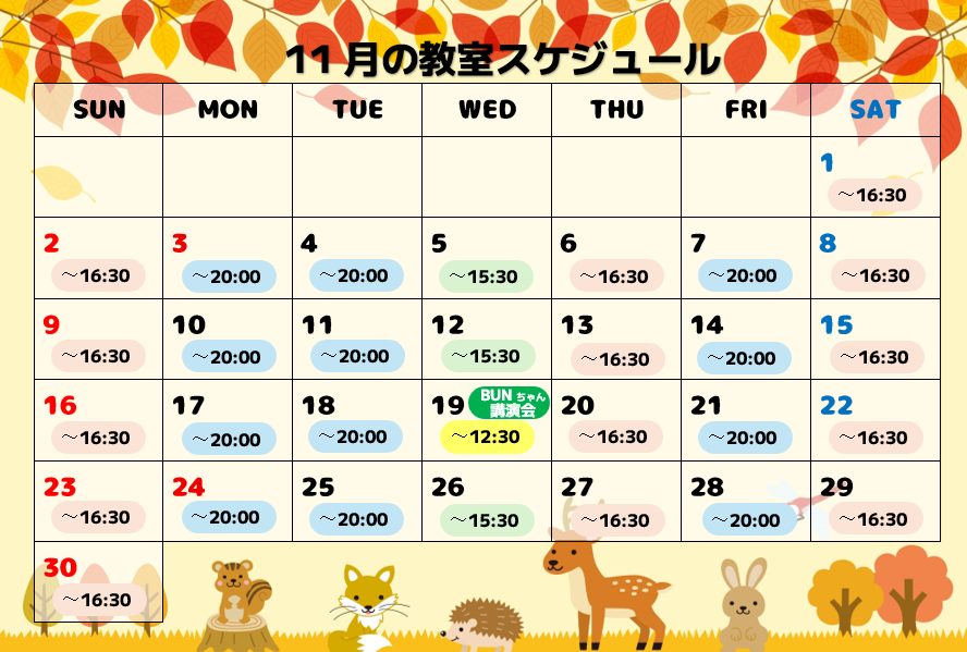 みなさんこんにちは(^^)/ 2025年11月の空席状況&休校情報をお知らせいたします! 【通学中の生徒のみなさんへ】 振替や追加の際の空席情報を参考にしてください♪ 予約・振替・追加の…
