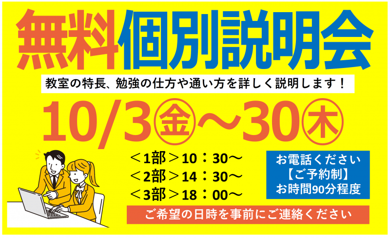 こちらの「無料体験お申込みフォーム」から無料体験・個別説明のご予約ができます!