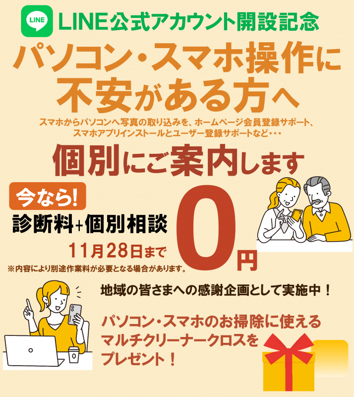 LINE公式アカウント開設記念「パソコン・スマホお困りごと相談会」開催です (^^♪
