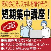 こんにちは!新潟市南区のパソコン教室わかるとできるイオン白根校です! 短期間で集中して勉強をしませんか。11月から受付開始をしている「短期集中講座」のご案内です。 春は役員を任されたり、進学や就職など…