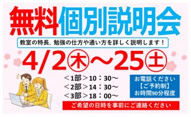 4月2日(木)〜25日(土)の期間中、無料の個別説明会を開催!